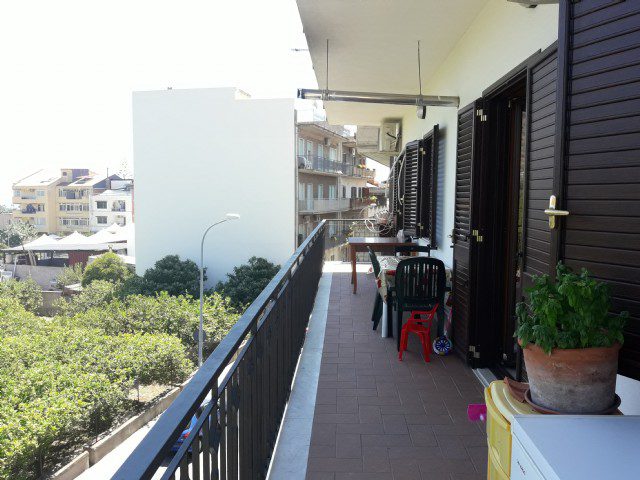 S. Teresa di Riva: in street Spragoną, bright and panoramic second floor apartment with terrace of property. Approximately 100 sqm interior, divided as follows: entrance, living room with kitchenette, three bedrooms, storage room, two bathrooms and balconies. Double exposure, high quality finishes and independent heating with pellet fireplace.