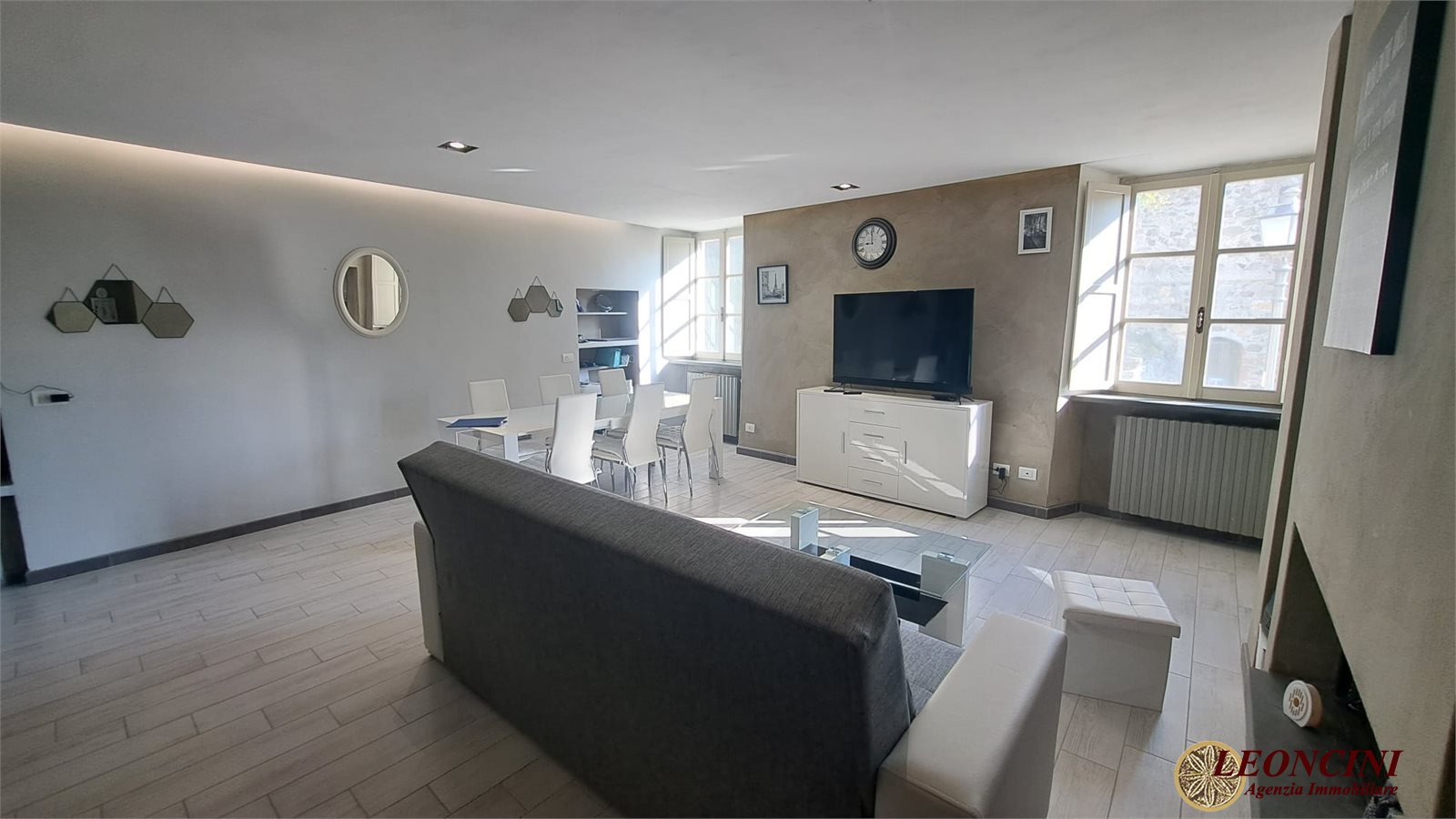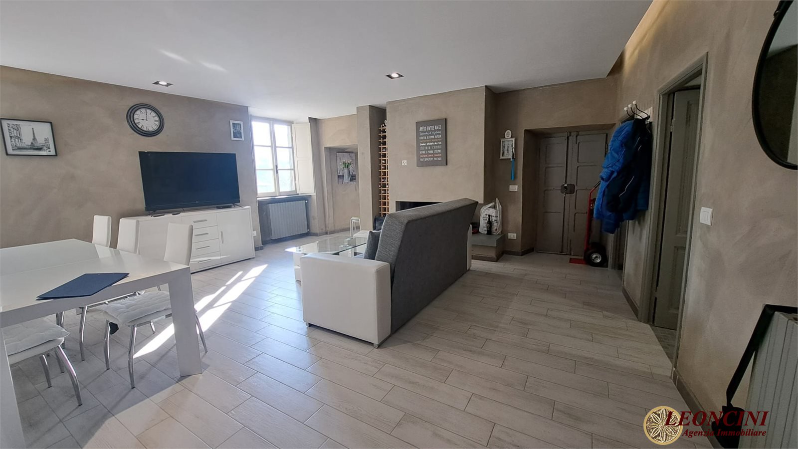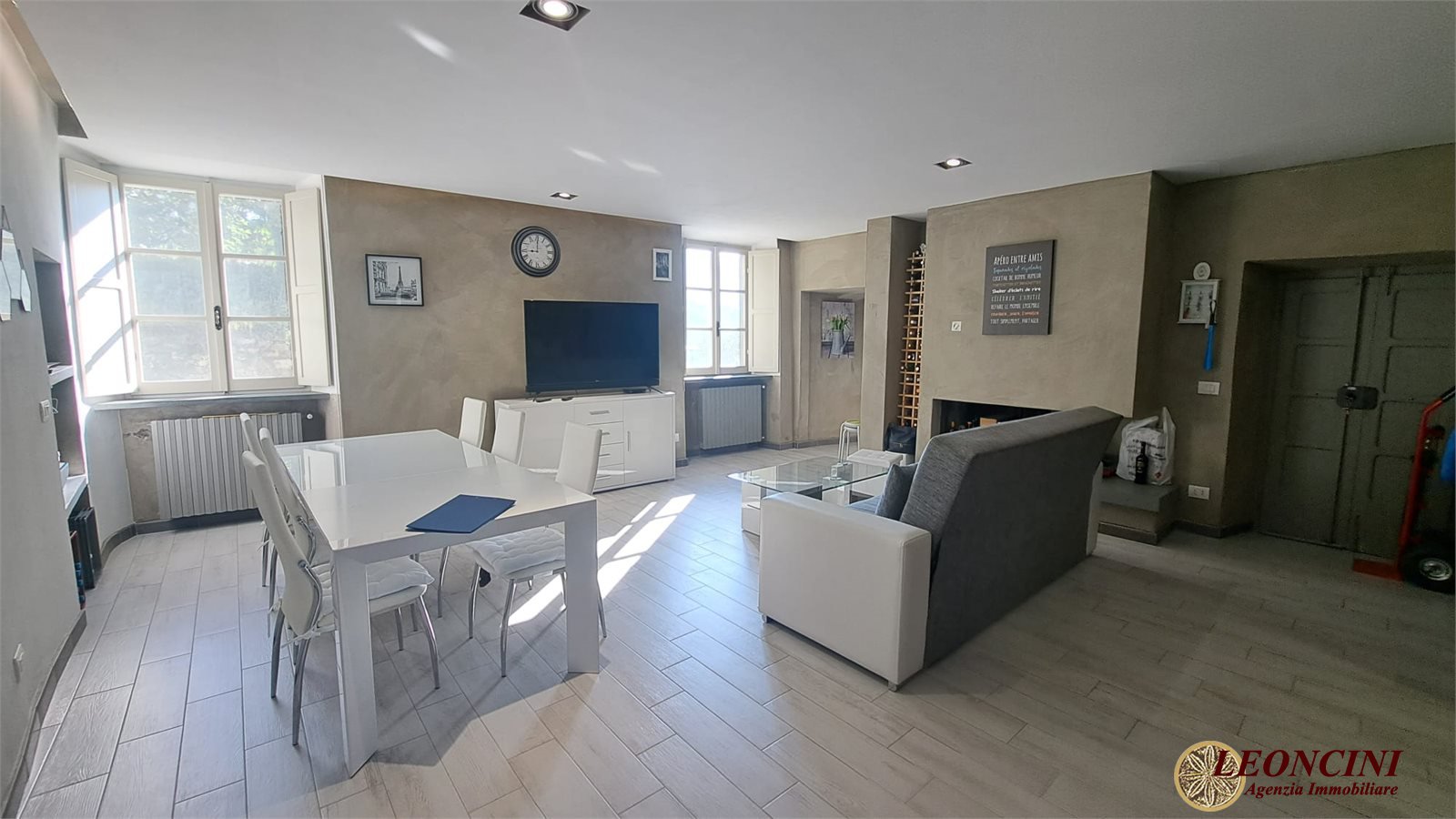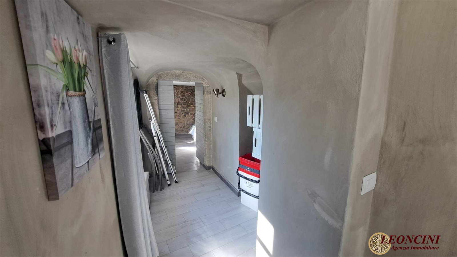 A325 Bagnone, Upper Lunigiana, Northern Tuscany. Imagine waking up surrounded by the silence of the hills, with natural light filtering through the windows and a view gently opening onto the countryside. In the heart of the historic center of Castiglione del Terziere, nestled like a gem at the foot of a medieval castle, this apartment represents the perfect balance of history, comfort, and authentic beauty. Completely renovated, the property is located on the first floor of a characteristic stone building, preserving its original charm while incorporating all modern conveniences. The entrance opens into a welcoming living room, where the fireplace takes center stage, creating a warm and convivial atmosphere in the cooler seasons. The well-organized kitchen integrates seamlessly into the spaces, making them functional and harmonious. The sleeping area offers two spacious bedrooms, ideal for family, guests, or tourists, accompanied by two bathrooms for practicality and comfort. Each room is enhanced by splendid natural light, amplified by the wooden windows, which ensure privacy and tranquility.\nThe absolute highlight is the panoramic terrace: a place where time seems to stand still. Here you can relax, read a book, dine al fresco, or simply be enchanted by the view of the valley below, which changes color with the passing of the hours and seasons. The secluded, hillside location makes this property perfect for those seeking peace and authenticity. Despite being in the historic center, the main services are easily accessible about 4 km away. The pedestrian access, a short distance from the parking lot, helps preserve the village atmosphere, providing a sense of detachment from the modern world.\nIdeal as a vacation home or tourist investment, this apartment offers a unique living experience, capable of attracting those who wish to experience, or share with others, the true essence of Lunigiana.\nHowever, there is a distinctive element, not immediately apparent, that makes this property even more interesting from a historical and architectural perspective... a peculiarity that tells an ancient story and that you can only discover by visiting. Don't miss this opportunity: contact us today to arrange a viewing and let yourself be captivated by its timeless charm.