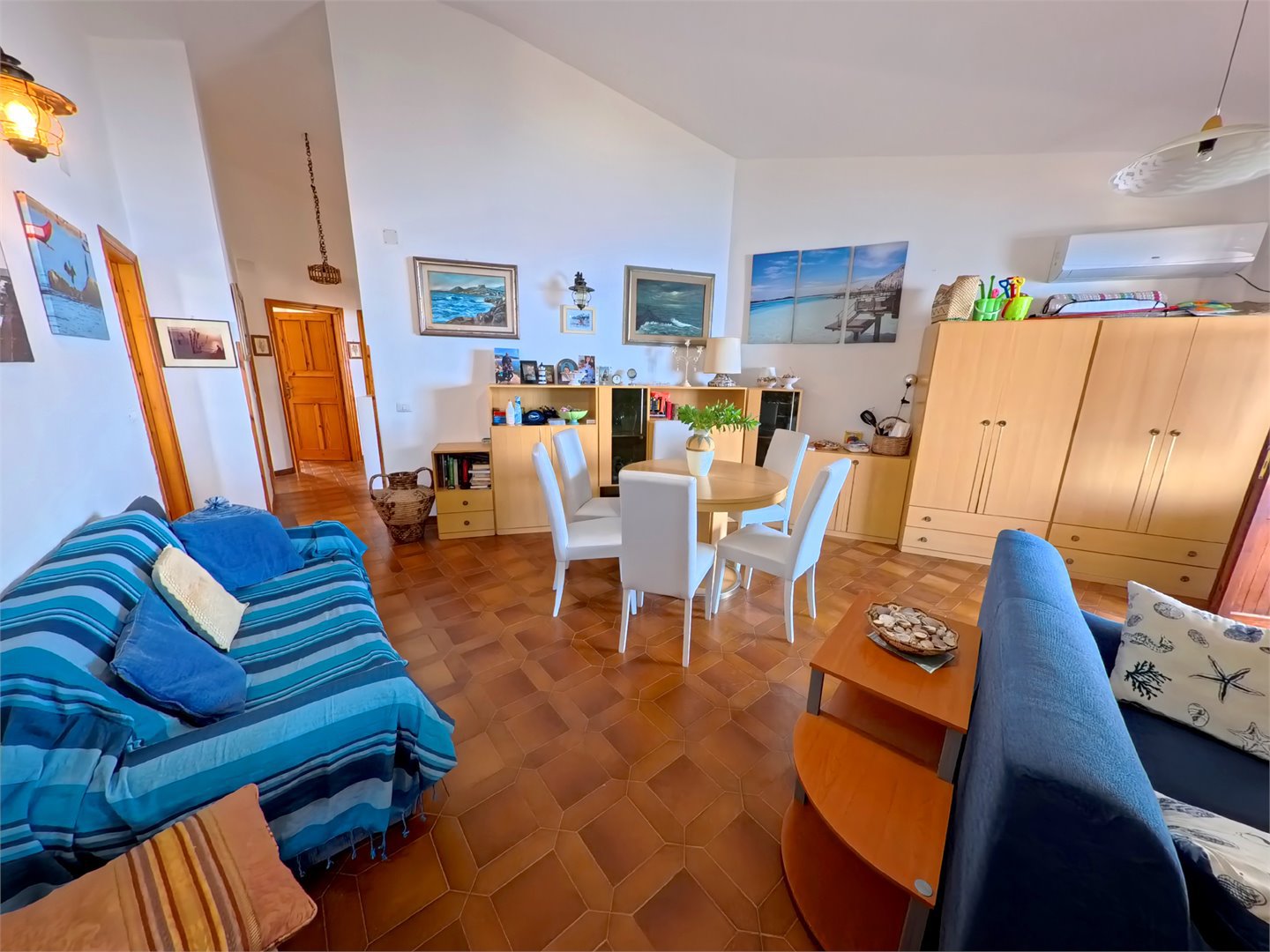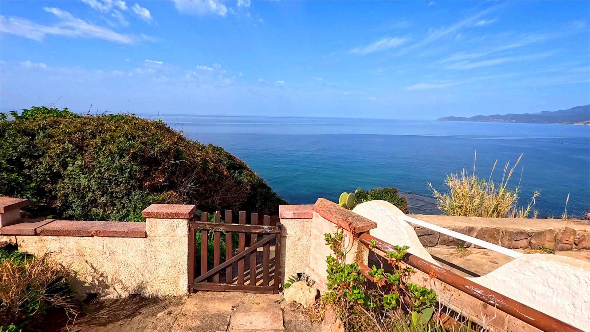 Splendid detached seafront villa on three levels, with a garden and private parking.\nThe villa has a separate apartment on each level, with a total of seven bedrooms, five bathrooms, three living rooms, several kitchens, and storage rooms.\nThe garden features fragrant, verdant Mediterranean scrub with a gate leading to the steps leading to the cliffs below, where the deep blue sea is reflected.\nThe beach is just a 10-minute walk away.\nAmenities are just minutes away, as is the town of Bosa.\nFor quick information, please WhatsApp us at +39 329 8843045