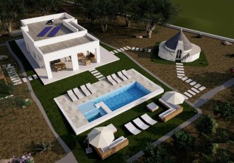 For sale in a dominant and panoramic position, a rustic villa with swimming pool of 100 square meters walkable.\nThe property, a few km from Ostuni and in a very quiet area, was built on a land of 12000 square meters planted with olive trees.\nInternally, the villa will have a large living area of about 40 square meters, 3 bedrooms each served by its own bathroom and then enjoy a wonderful and panoramic large veranda of 50 square meters.\nThe villa will be equipped with excellent thermal insulation, a technical room, a swimming pool (4x10) and a large cistern.\nInside the land, just 10 meters away, there is a beautiful Saracen trullo of 20 square meters, where there is the possibility of creating a fourth bedroom with bathroom.\nThe property could become a housing solution or a luxury accommodation facility also thanks to the excellent location a short distance from the various services.\nTHE FIRST 3 IMAGES ARE RENDERINGS.\n\nThe asking price of € 450000 consists of the sale of the property in its current state, i.e. in its rustic state, while the asking price of € 850000 consists of the sale of the completed property.