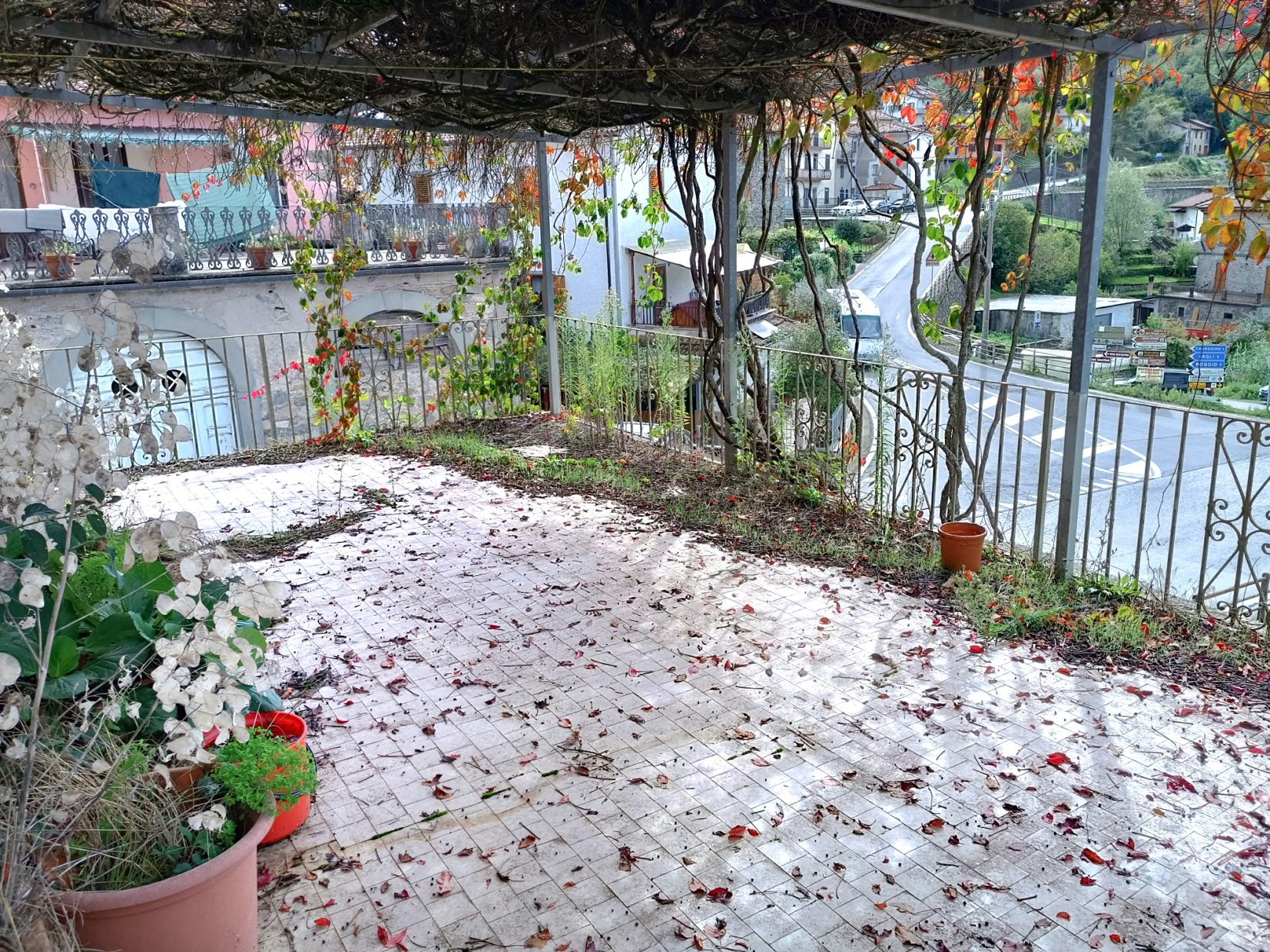 This is not a property suitable for those seeking absolute tranquility and silence since on one side it borders a fairly busy road although not excessively so.\nIn favor there is everything else since the property consists of a house in good condition (but a little neglected) with distinctly Tuscan characteristics inside, with a very large panoramic terrace and an underlying private land on two sides of about 800 square meters terrace and with fruit trees.\nThe house consists of a large cellar at street level.\nFrom the street level we find the living area on two floors consisting of a very large living room with fireplace and a hallway that leads to a large very characteristic bathroom, complete with bidet and bathtub.\nThe upper floor is accessed via a comfortable staircase covered in Tuscan terracotta and where we find a beautiful large kitchen with fireplace and from which you access the large pergola terrace and with a wonderful panoramic view.\nOn the kitchen there are 2 doors from which you access as many bedrooms, one with a double bed and the other with two bunk beds.\nThe heating is independent and there is a fireplace per floor.\nFrom the house in less than 10 minutes by car you can reach the charming Lake Vagli and the train station for Lucca-Pisa airport can be reached in a few minutes on foot.