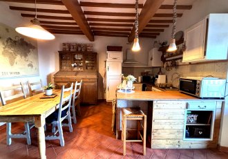 Welcome to this charming townhouse, a renovated gem that captures the essence of authentic Tuscan rustic style. Nestled in the tranquility of the heart of Tuscany, this property welcomes you with an independent entrance that takes you directly to a cozy ground floor apartment, where every detail speaks of warmth and tradition.\n\nInside, you will find yourself in a large, bright living room, perfect for moments of relaxation or conviviality, which opens onto an eat-in kitchen, ideal for preparing typical dishes with fresh ingredients. There is no shortage of comfortable spaces such as the closet and a double bedroom that invites you to rest. The bathroom, equipped with a modern shower, completes this floor full of comforts.\n\nA delightful spiral staircase will lead you to a second sleeping area with unique charm, with a vaulted ceiling characterized by splendid mezzanines that tell ancient stories. A true refuge where tranquility reigns supreme.\n\nUpstairs, a cozy sitting room, with a fireplace, will welcome you for intimate and cozy evenings. The French window leads you to a private loggia, where you can enjoy moments of relaxation outdoors, and from which you can access a practical laundry room. That's not all: a staircase will take you to a roof terrace, embellished with a lovely garden, a green corner to customize to your liking.\n\nReturning inside, you will find a bright eat-in kitchen, perfect for experimenting with new recipes. Going up just three steps, you will reach a double bedroom, while a spacious bathroom with a bathtub offers you a corner of pure relaxation. Finally, going down two more steps, you will discover another bedroom, perfect for guests or as a study.\n\nThis townhouse is not just a house, but a place where the past meets the present, where every corner is designed for comfort and conviviality. Don't miss the opportunity to experience the Tuscan dolce vita! Contact us for a visit and let yourself be fascinated by this one-of-a-kind property! 🌟\n\nChianni is a municipality located in the province of Pisa, in Tuscany. It is surrounded by several historic cities, coastal towns and typical villages. Here are some approximate distances from the main towns in the surrounding area:\n\nHistoric towns\nVolterra: about 30 km\nSan Gimignano: about 40 km\nPisa: about 50 km\nLucca: about 70 km\nFlorence: about 80 km\nSiena: about 90 km\nCoastal towns\nMarina di Pisa: about 50 km\nLivorno: about 70 km\nViareggio: about 85 km\nForte dei Marmi: about 95 km\nNearby towns\nCasciana Terme: about 10 km\nTerricciola: about 15 km\nLajatico: about 20 km\nPomarance: about 25 km\nPeccioli: about 25 km
