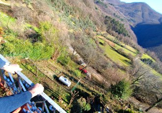 House located in a sunny and quiet hillside village surrounded by greenery and with panoramic views near Licciana Nardi.\nThe house is on two levels, habitable, in excellent general condition and is left almost completely furnished.\nOn the ground floor we find a covered courtyard/terrace with the entrance door which leads into the living room with a beautiful fireplace, there is a kitchenette, a bathroom and a storage room with washing machine.\nThe upper floor is accessed via a beautiful staircase where we find a bathroom and two large bedrooms with both French doors opening onto a large terrace with a panoramic view.\nThere is independent heating with gas, water and electricity. The car can be left in the public car park a few tens of meters away.