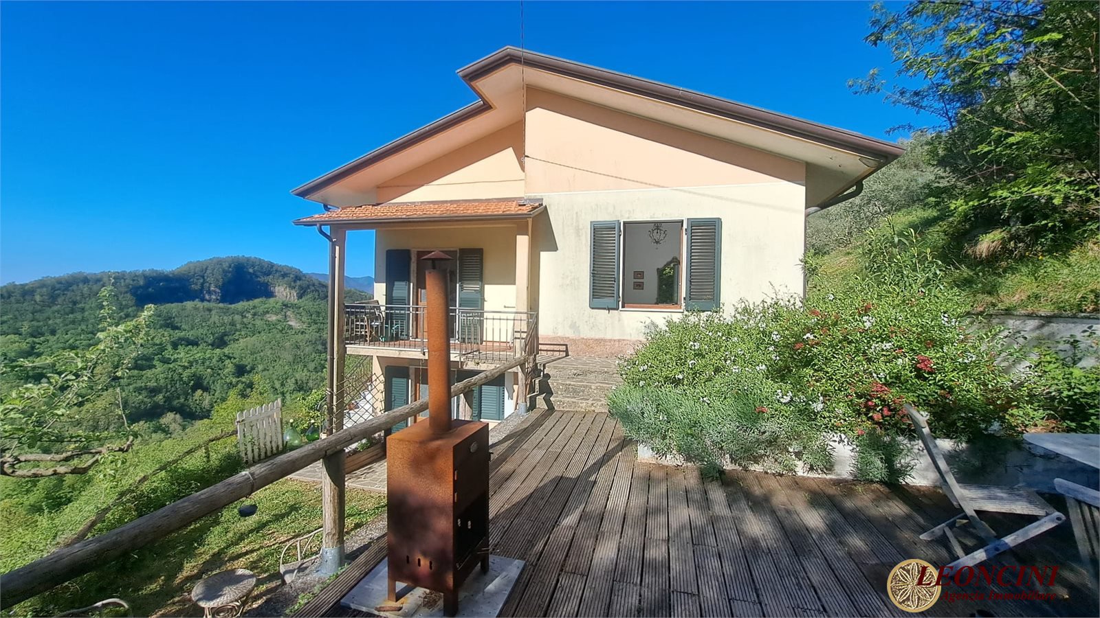 A327 Imagine waking up every morning surrounded by the silence of nature, with the sun gently illuminating the hills and an endless view of the countryside: this detached villa in Filattiera, in the Lusignana area, is the place where all this becomes a reality. Situated approximately 520 meters above sea level, in a privileged position and completely south-facing, the property enjoys extraordinary light throughout the day. The setting is typical of the most authentic hillside areas: absolute tranquility, clean air, and a sense of peace that is difficult to describe, but which is felt as soon as you arrive. The house, built of solid masonry, is spread over two well-arranged levels. On the first floor, you are greeted by an entrance hallway that leads to the kitchen and a spacious living room with a fireplace, perfect for creating a warm and convivial atmosphere in the cooler months. This floor also features a bedroom, a bathroom, and exquisite outdoor spaces: two balconies and a terrace that offer unique vantage points over the surrounding landscape. On the ground floor, a hallway leads to two additional bedrooms and a second bathroom, offering ideal spaces for a family, guests, or a hospitality business.\nThe real star, however, is the exterior: approximately 4,900 square meters of land surround the property, enriched by 75 olive trees that tell a story of tradition and authenticity. It's a perfect space for those who love the outdoors, for children, or for those looking to create a relaxation area, a swimming pool, or a small agricultural corner. Despite the feeling of total isolation and tranquility, the location remains convenient: the Pontremoli highway exit is just 6 km away, while the Versilia and Cinque Terre coasts are just a 40-minute drive away.\nA curious aspect? This property is perfect not only as a private residence, but also as a vacation home or investment: the charm of the location and the presence of the olive trees could become a distinctive element for a unique hospitality project.\nIf you're looking for a home that exudes emotion, where every detail evokes nature, space, and freedom, this is the solution you've been waiting for.\nContact us to arrange a viewing: some properties aren't just told, they're experienced.