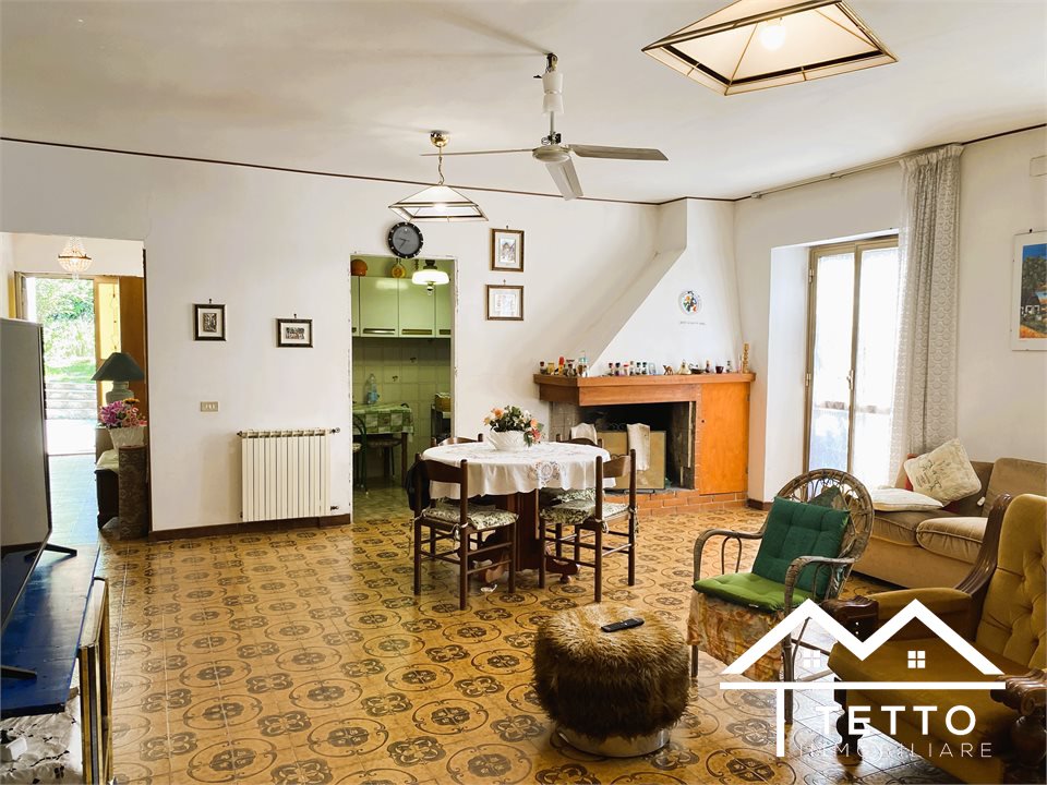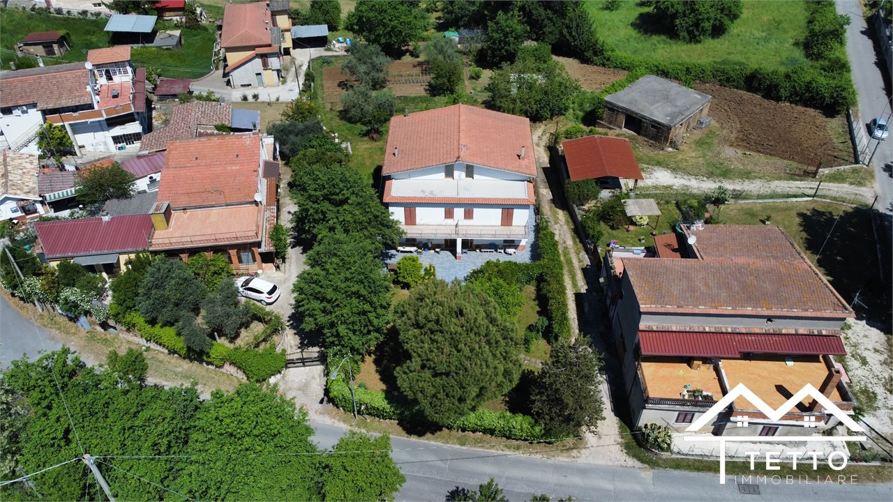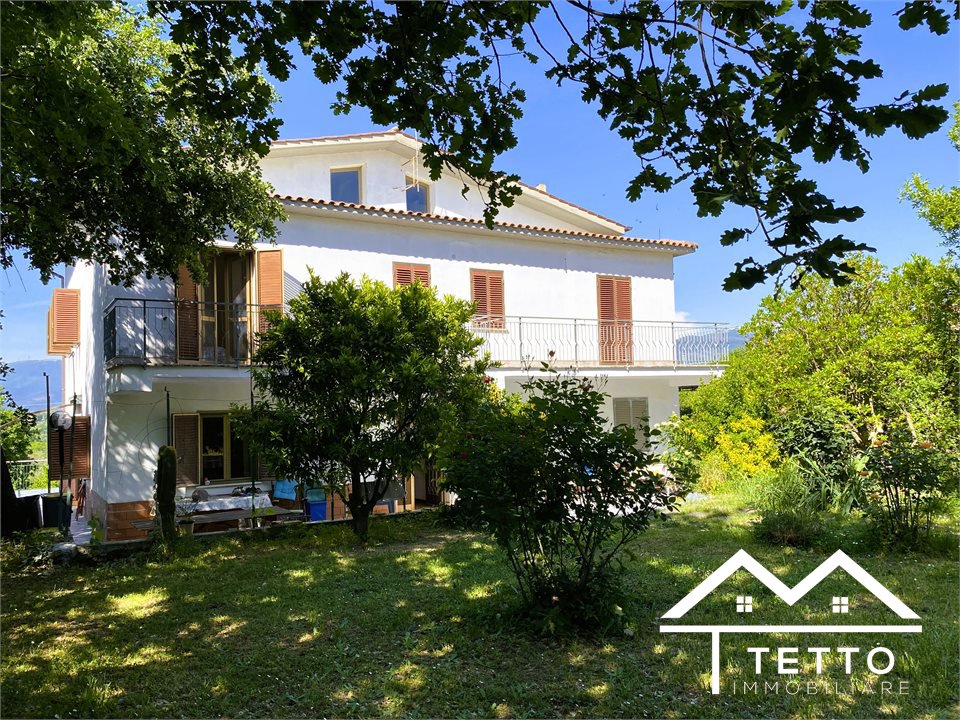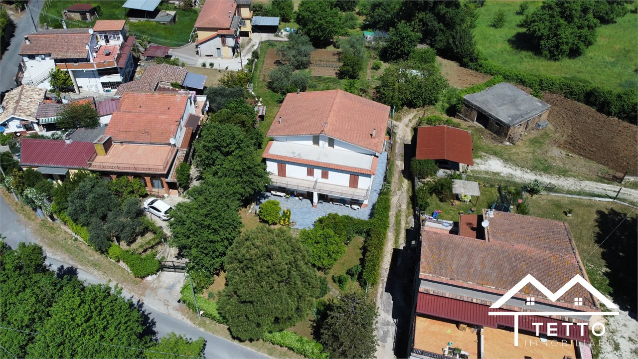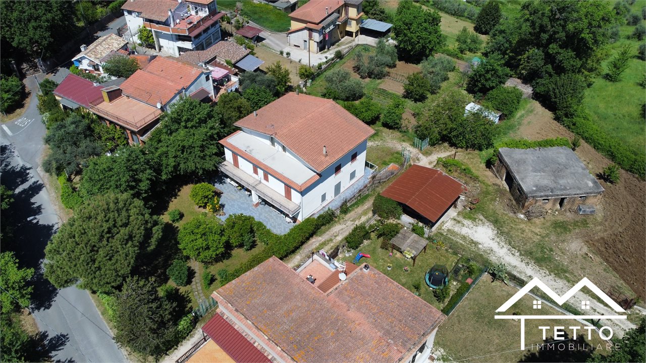 In the heart of the characteristic village of Forano Sabino, we offer for sale a detached semi-detached villa with a large private land of 2,000 square meters, perfectly flat and enriched with fruit trees, ornamental plants and space dedicated to a vegetable garden.\nThe property stands out for its generosity of space and versatility, ideal for two families or for those who want a home with an independent unit.\nThe two residential units, mirrored, are composed of:\n - Living room with fireplace \n - Kitchen \n - 3 bedrooms \n - Two bathrooms \n - Large panoramic terraces \n - Attic accessible internally \nEquipment and features:\n - Double independent entrance \n - Already separate systems for autonomous management \n - Independent natural gas heating \n - Direct water system \n - IMOF septic tank in compliance with standards \nThe property includes:\n - Two large garages\n - The first with fireplace, cave, bathroom and water/gas utilities \n - The second open space with cave and bathroom \n - Wine cellar \n - Technical room \nStrengths:\n - Large size, ideal for large families \n - Livable and flat outdoor spaces \n - Central but private location \n - Stunning panoramic views of the Sabina Mountains \n - Solid structure, typical of buildings of the past \nA unique solution for those looking for a detached, spacious house already prepared for a double home, without sacrificing the convenience of the town center.\n
