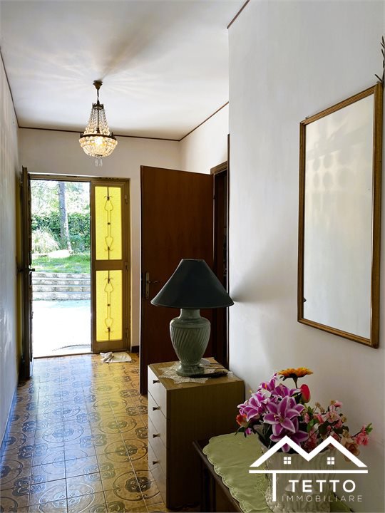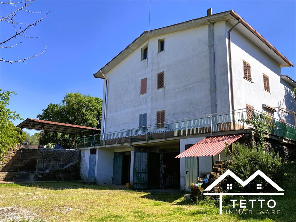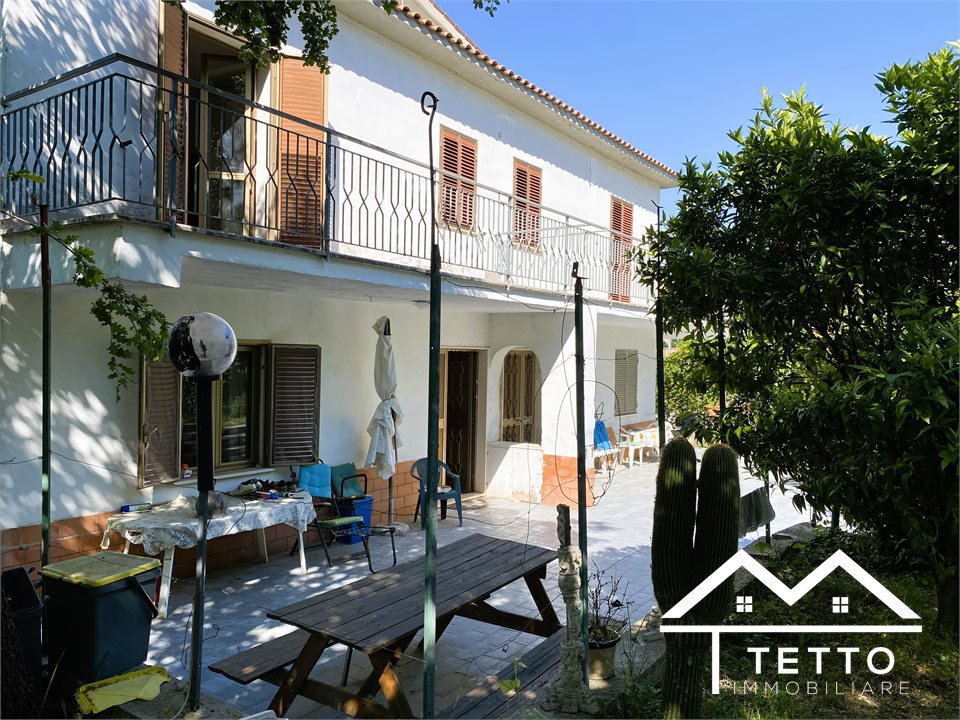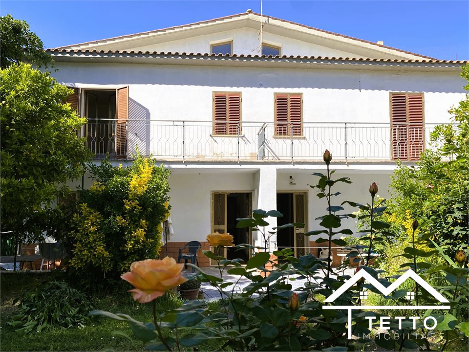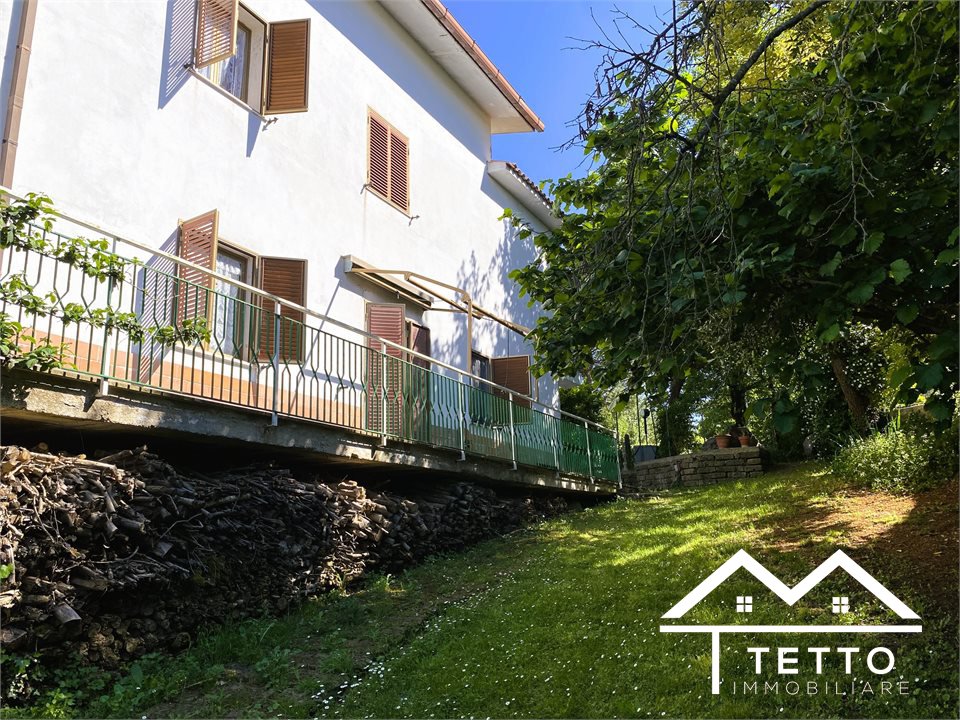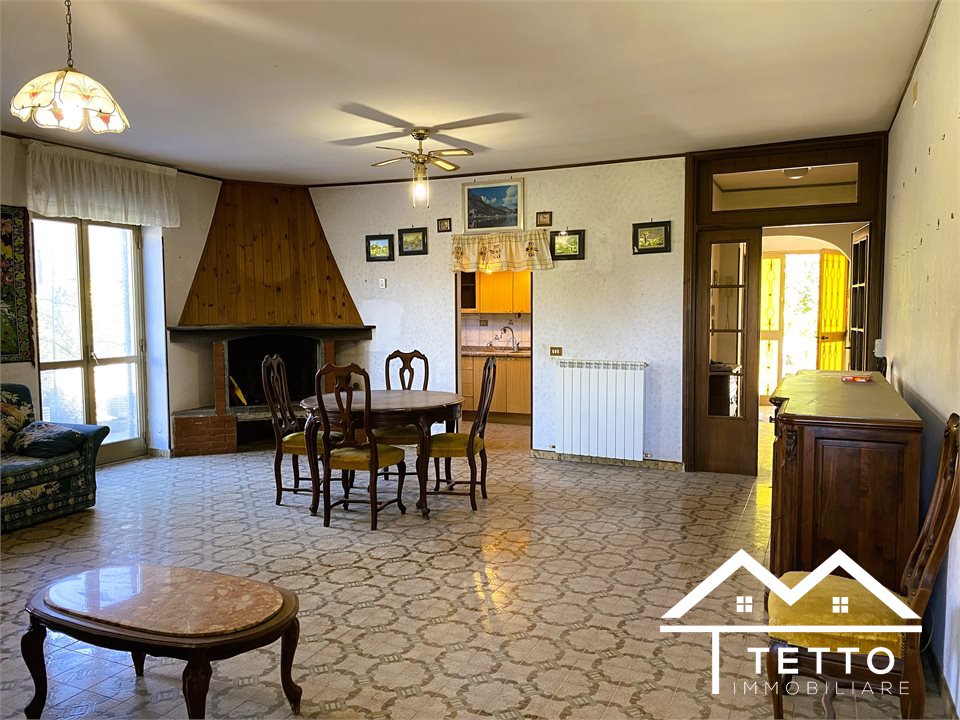 In the heart of the characteristic village of Forano Sabino, we offer for sale a detached semi-detached villa with a large private land of 2,000 square meters, perfectly flat and enriched with fruit trees, ornamental plants and space dedicated to a vegetable garden.\nThe property stands out for its generosity of space and versatility, ideal for two families or for those who want a home with an independent unit.\nThe two residential units, mirrored, are composed of:\n - Living room with fireplace \n - Kitchen \n - 3 bedrooms \n - Two bathrooms \n - Large panoramic terraces \n - Attic accessible internally \nEquipment and features:\n - Double independent entrance \n - Already separate systems for autonomous management \n - Independent natural gas heating \n - Direct water system \n - IMOF septic tank in compliance with standards \nThe property includes:\n - Two large garages\n - The first with fireplace, cave, bathroom and water/gas utilities \n - The second open space with cave and bathroom \n - Wine cellar \n - Technical room \nStrengths:\n - Large size, ideal for large families \n - Livable and flat outdoor spaces \n - Central but private location \n - Stunning panoramic views of the Sabina Mountains \n - Solid structure, typical of buildings of the past \nA unique solution for those looking for a detached, spacious house already prepared for a double home, without sacrificing the convenience of the town center.\n